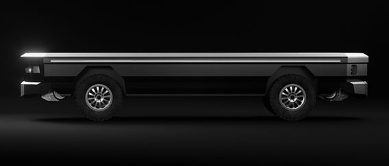 Rāden is built on a flat-deck chassis and designed for heavy payload transport in off-grid or industrial zones. With a top speed of 65 mph on road and 25 mph on rail, it supports payloads between 4,000 and 10,000 lbs and runs approximately 600 miles on a single charge. The vehicle complies with standard-gauge rail requirements, allowing it to interface with existing infrastructure while bypassing traditional bottlenecks.