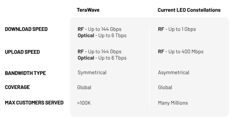 TeraWave targets organizations that need more than standard satellite service. Blue Origin is going after higher throughput, balanced upload and download speeds, built-in redundancy, and the ability to scale quickly as demand grows. The system pairs radio frequency and optical links to deliver performance that complements fiber rather than trying to replace it.