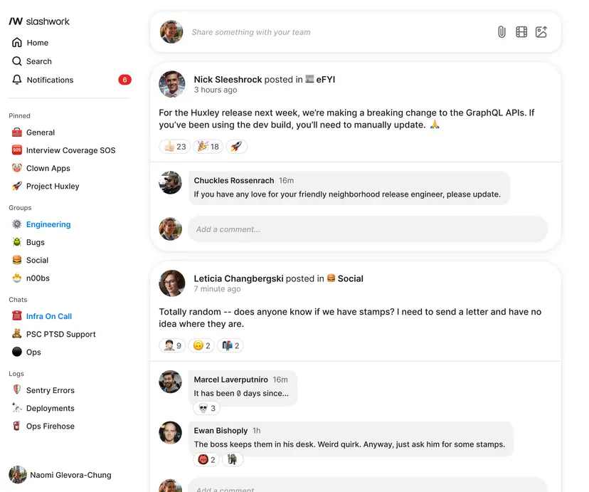 Inside Slashwork, every piece of content carries a large language model embedding. That setup lets users search across conversations in plain language, even when they cannot remember where something was shared. The system also supports AI agents that can track down posts or images that do not surface in standard searches. The goal is to make workplace knowledge feel less buried and less dependent on perfect recall.