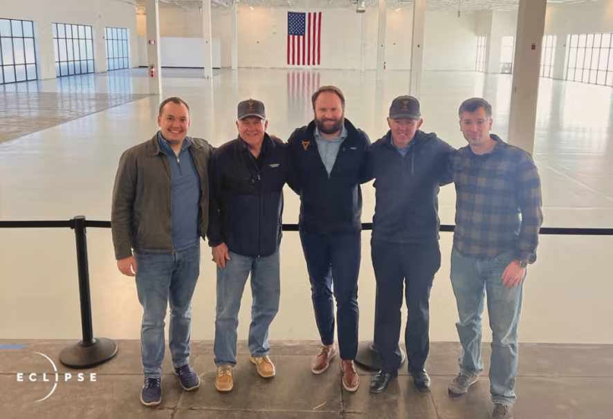 A group of True Anomaly Co-Founders and board members gathered shortly after construction began on the company’s satellite manufacturing facility in Centennial, CO. Pictured from left to right: True Anomaly Chief Product Officer Tom Nichols, Board Member U.S. Air Force Lt. Gen. (Ret.) Wally Moorehead, True Anomaly CEO Even Rogers, Board Member William McCaffrey, and Electrical Engineer Dan Brunksi. (Courtesy: Eclipse Capital)
